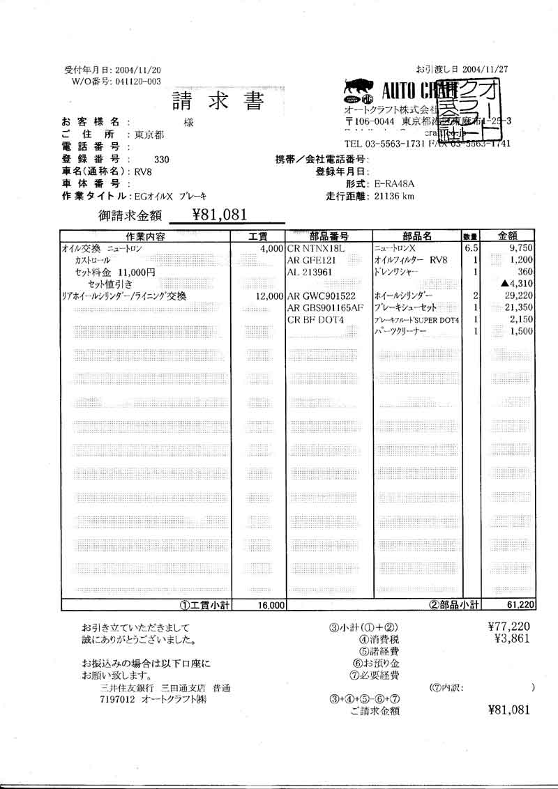 エンジンオイル交換(MG Rover Nippon 東京) \3,150